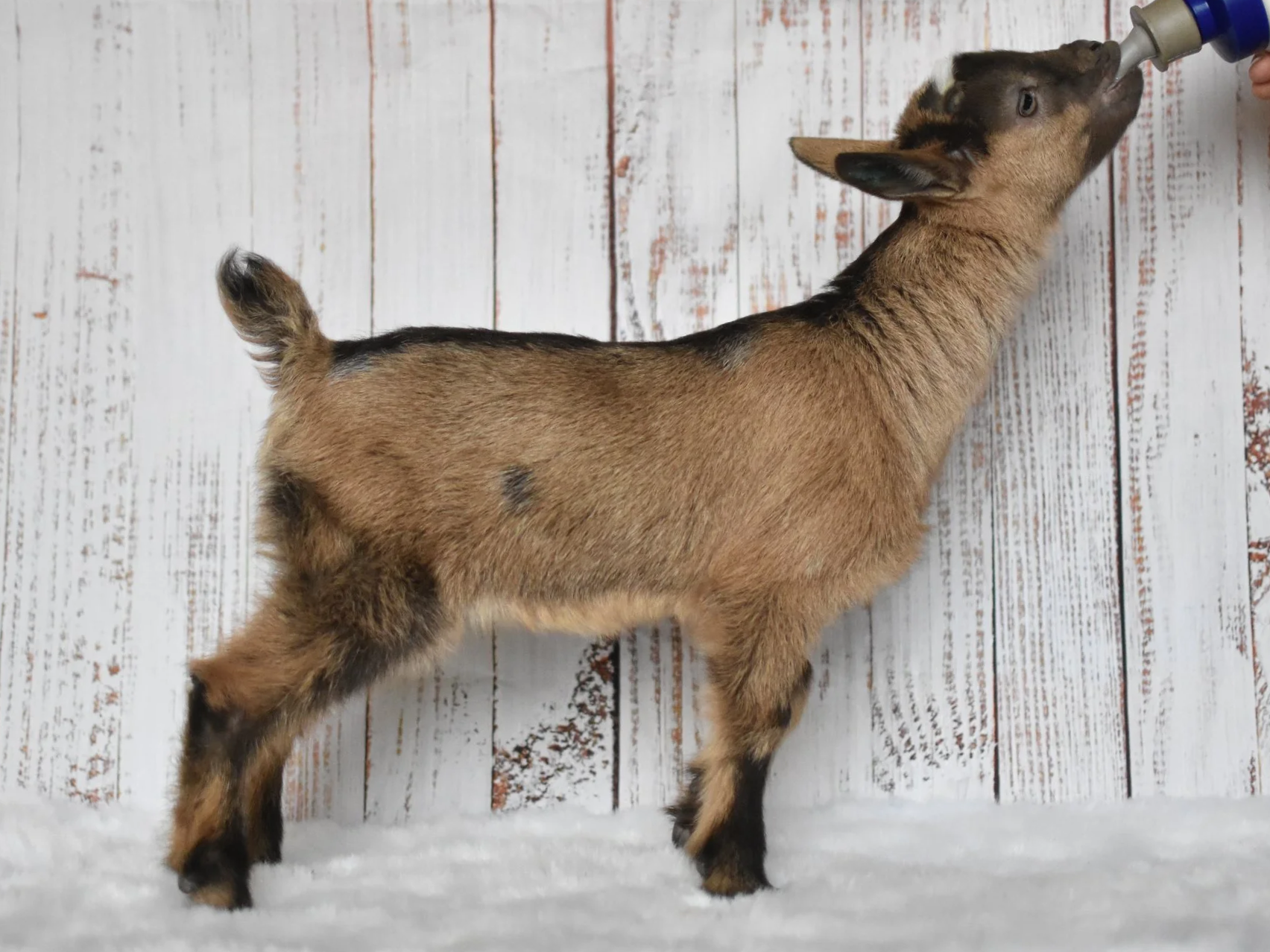 Leotie is our first retained doeling by our young herdsire Atwood Acres DM Watership Down. She stands on correct feet and legs, has a very level rump, and is WIDE!