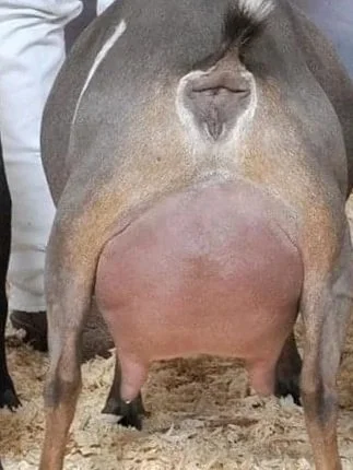 Appraised as a 6 year old with Es in shoulder assembly, front legs, back, rump, and udder texture. Vs in head, and rear legs.